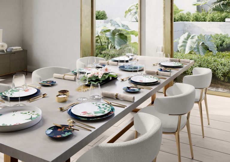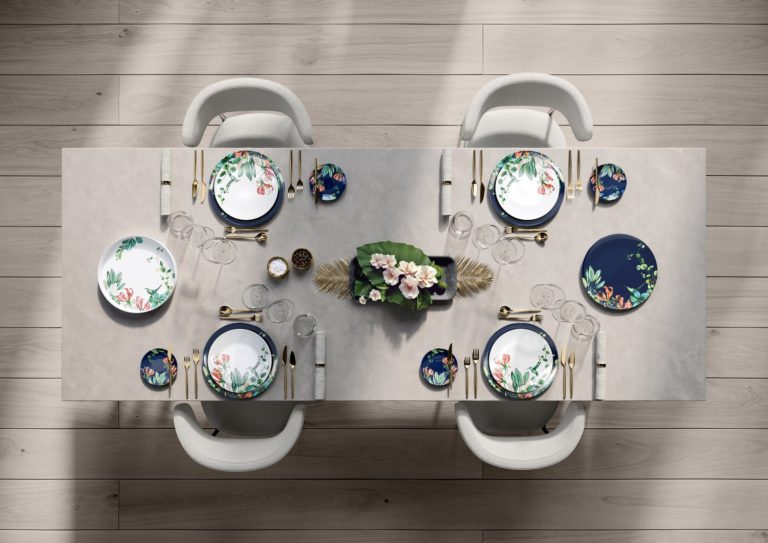 Let our latest premium collection take you away: Avarua combines motifs of tropical birds and exotic botanicals, creating an extravagant ambiance. Fine shades of gold on exquisite Premium Bone Porcelain round off the décor.