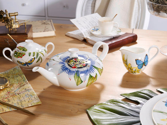 Unusual shapes and richly detailed exotic decorations in bright colours make the Amazonia Anmut collection from Villeroy & Boch truly eye-catching. The original décor of this attractive teapot from the Amazonia Anmut collection makes it the perfect centrepiece for your festively laid tea table. Turn your teatime into a moment of pleasure.