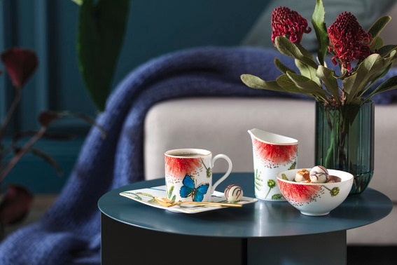 With the Amazonia design, Villeroy & Boch enhances the popular Modern Grace collection with exotic, bright and colourful rainforest motifs – a real eye-catcher for the table. The modern and beautifully designed coffee cup sports a colourful rain forest design. Combined with the saucer to enhance your coffee experience. Amazonia is as practical as it is attractively decorated.