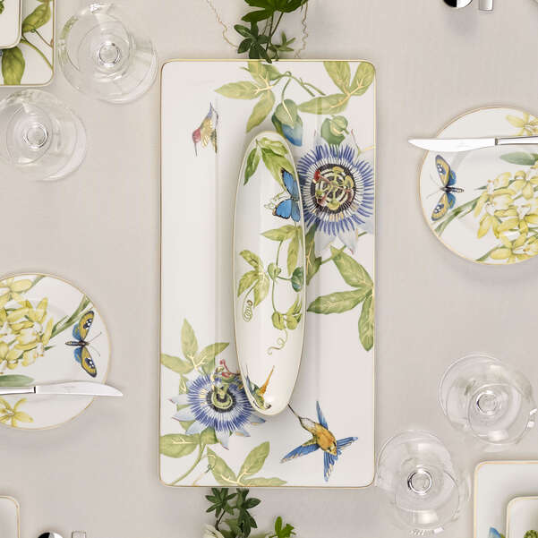 With the Amazonia decor, Villeroy & Boch enhances the popular Modern Grace collection with exotic, bright and colourful rainforest motifs – a real eye-catcher for the table. This attractive bowl is particularly suitable for serving small snacks or enhancing an attractive table decoration.