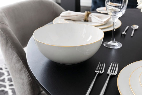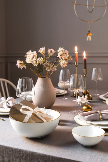The Anmut Gold collection features hand-painted decorative lines made with fine gold on elegant white, high-quality porcelain. It is precisely this interplay between Premium Bone Porcelain and real gold that gives the collection a sense of style and class. Perfect for anyone who loves both quality and elegance. This round bowl strikes a balance between a practical size and a stylish appearance – the pattern will remain brilliant for a long time thanks to "Inglaze Gold" technology. Make your table more beautiful with the timeless charm of fine gold.