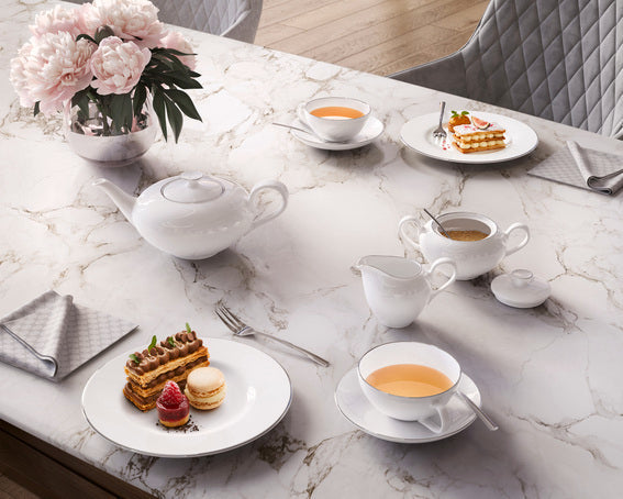 Villeroy & Boch offers the ultimate in elegance for every dining table. The timeless Anmut Platinum No.1 and No.2 collections are characterised by a brilliant white and an elegant platinum decor. This very elegant, timelessly beautiful sugar bowl is the perfect addition for your teatime or afternoon coffee. Add the finishing touch to your service for special occasions.