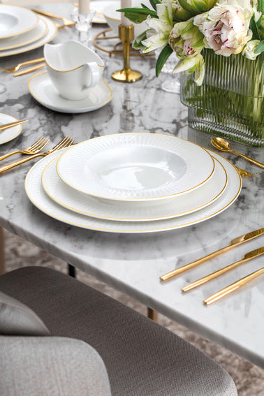We also have the matching saucer for this gravy boat – to make it a practical style highlight for every occasion. Explore the combination of a beautiful textured relief and finest gold fillet.