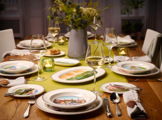 This deep plate forms part of Villeroy & Boch's folk art design collection Design Naif and shows one out of eight different deep plate designs. The rustic scenes featured on the individual items of this collection will add a touch of charm and atmosphere to any table. Designed by the Corsican artist Gérard Laplau, the decor has made an important contribution to establishing Design Naif as an art form all over the world. This premium porcelain is ideal for everyday use on the breakfast table or for an afternoon coffee break. Dishwasher safe and microwave safe.