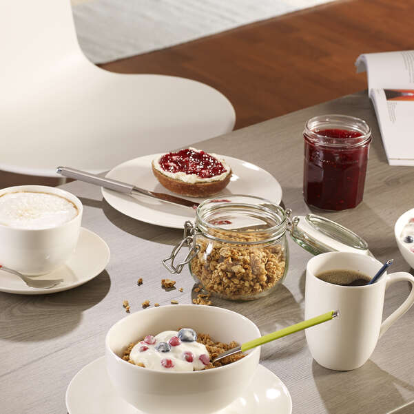 The timeless For Me collection is the all-around talent for everyday. From breakfast through to dinner, the simple, white porcelain offers countless combination options, for example with the gaily coloured Colourful Life collection. Serve bread specialities, be it rye bread, baguette or ciabatta, on the right bread plate with your meal. Complement your Villeroy & Boch crockery set.