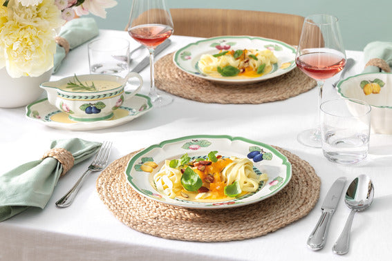 French Garden creates a magnificent orchard on the table with traditional country house elements in warm colours. Its timeless beauty allows the different summer decors to be mixed and matched with each other. Serve crisp green salad or hearty potato salad in the appropriate dish made from the finest porcelain. Create a cosy feeling on the table.