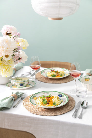 French Garden creates a magnificent orchard on the table with traditional country house elements in warm colours. Its timeless beauty allows the different summer decors to be mixed and matched with each other. From hearty stews to savoury goulash through to fresh fish soup – culinary delights taste twice as good served in this stylish plate. Treat your guests to beautiful tableware.