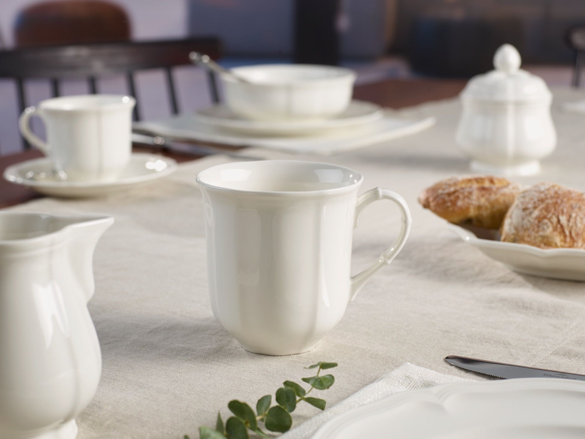 The Manoir collection, made from high-quality Premium Porcelain, combines naturalness with elegance. Intricate reliefs and decorative rims accentuate the elegant character of the decor. Add a classic touch during your coffee break and experience pleasurable moments with the large cup from Manoir. Make your table beautiful and inviting.