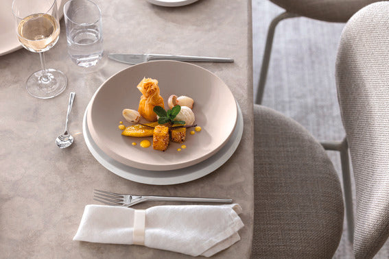 The tableware collection in the trend colour of beige uses an interaction of different surfaces, from matt to a glossy finish, to create a harmonious and elegant table setting.