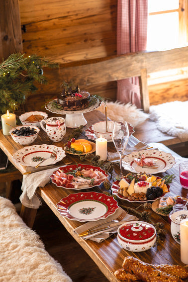 The crockery is adorned with playful motifs in red, green and white and brings back childhood memories.
